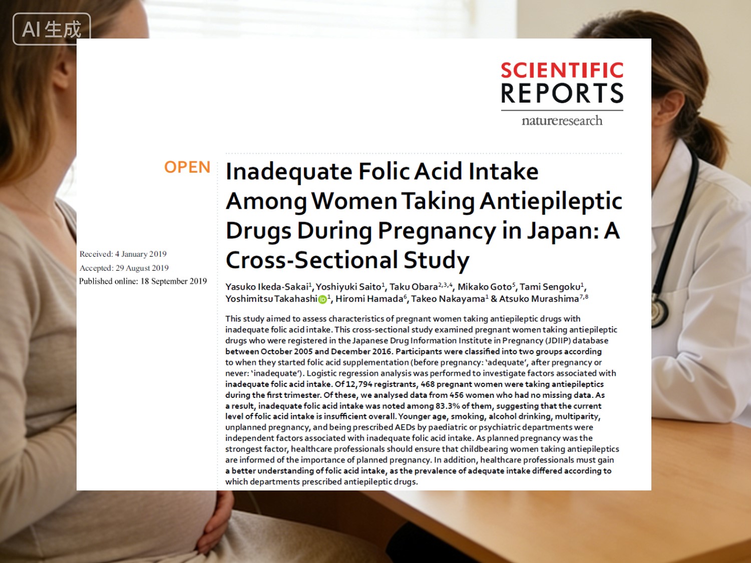 Японське перехресне дослідження, опубліковане вНаукові доповіді(Nature portfolio, 2019) опитали 456 вагітних жінок, які приймали AED: