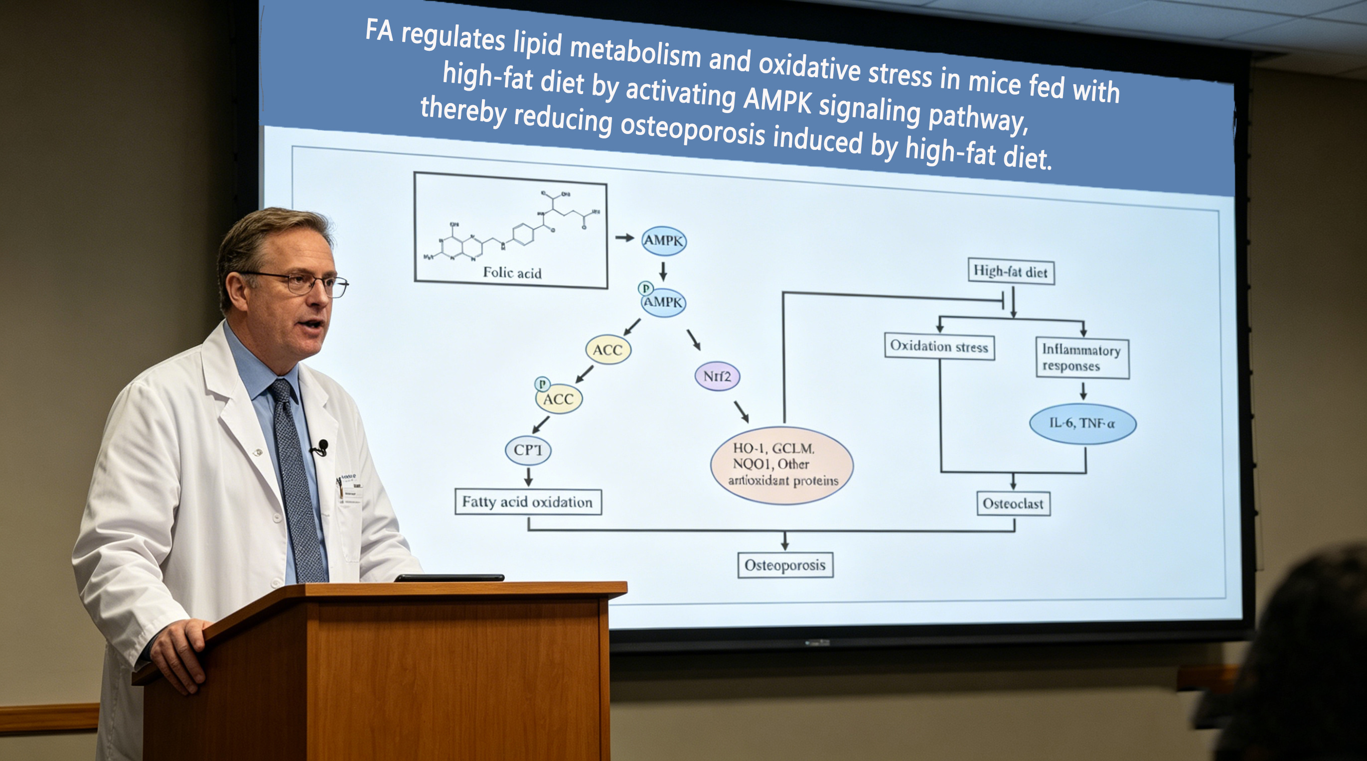 Це була найцінніша частина паперу. Після втручання фолієвої кислоти фосфорилювання AMPK було значно підвищено в кістковій тканині.